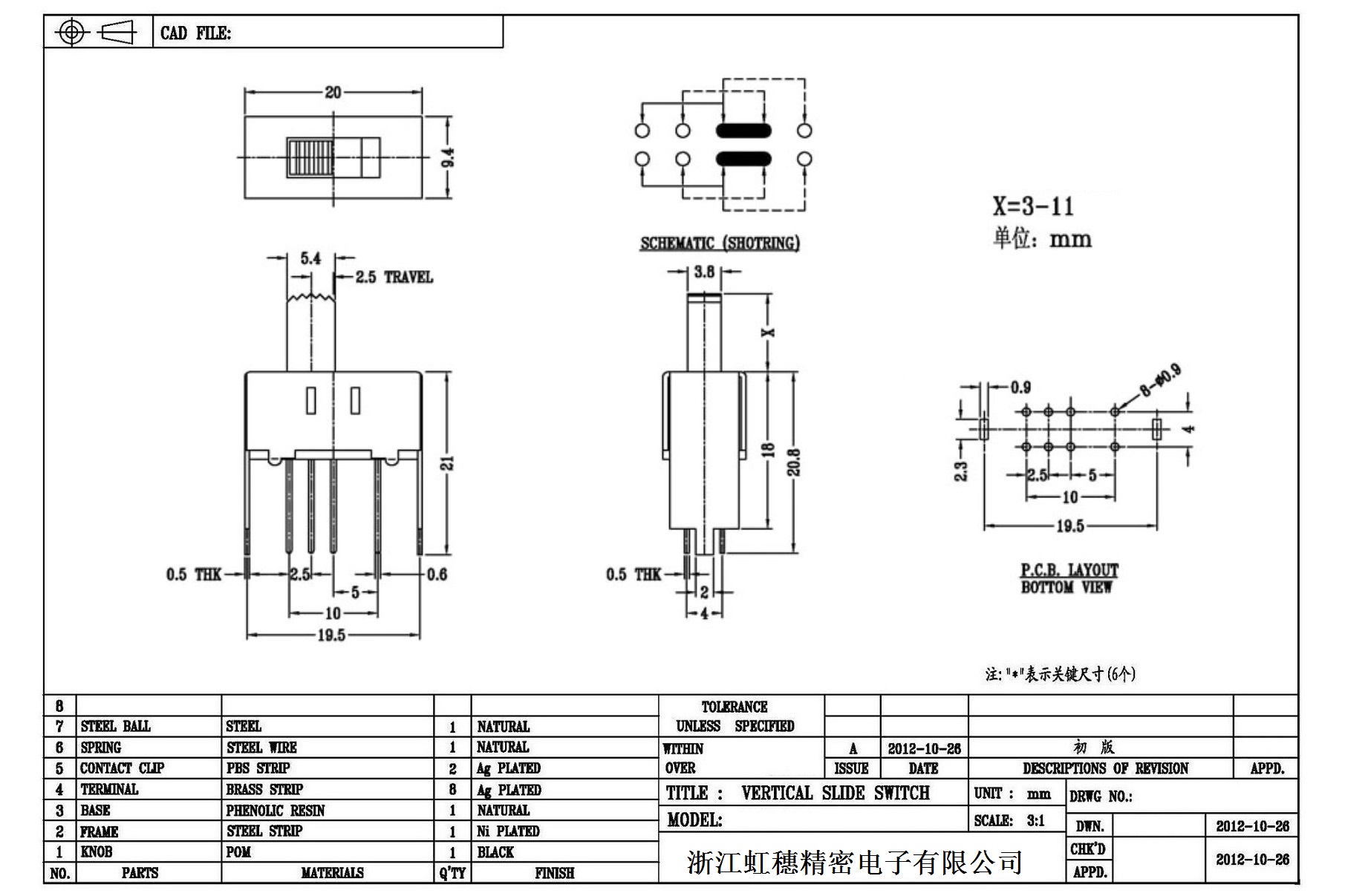 Verticaltoggle switch side dial/ Vertical slide switch technical indicators