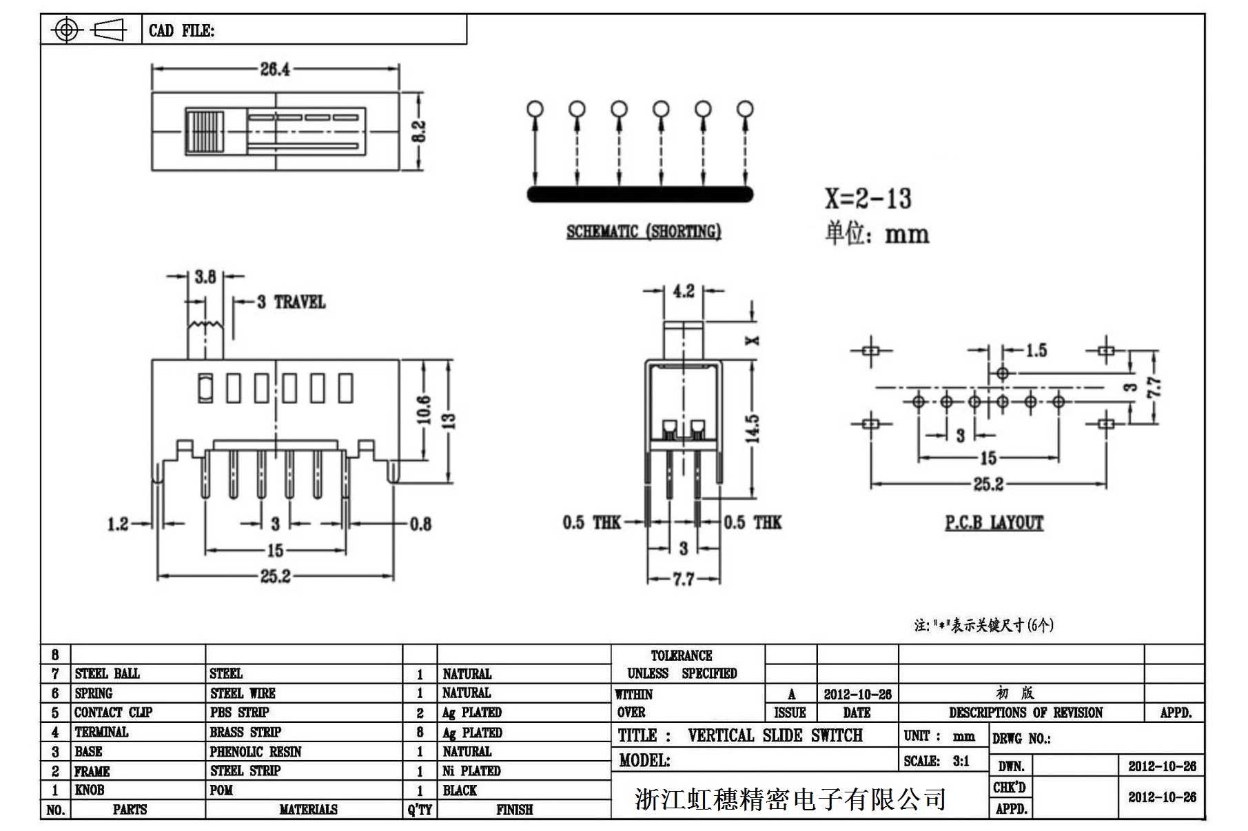 Verticaltoggle switch side dial/ Vertical slide switch technical indicators