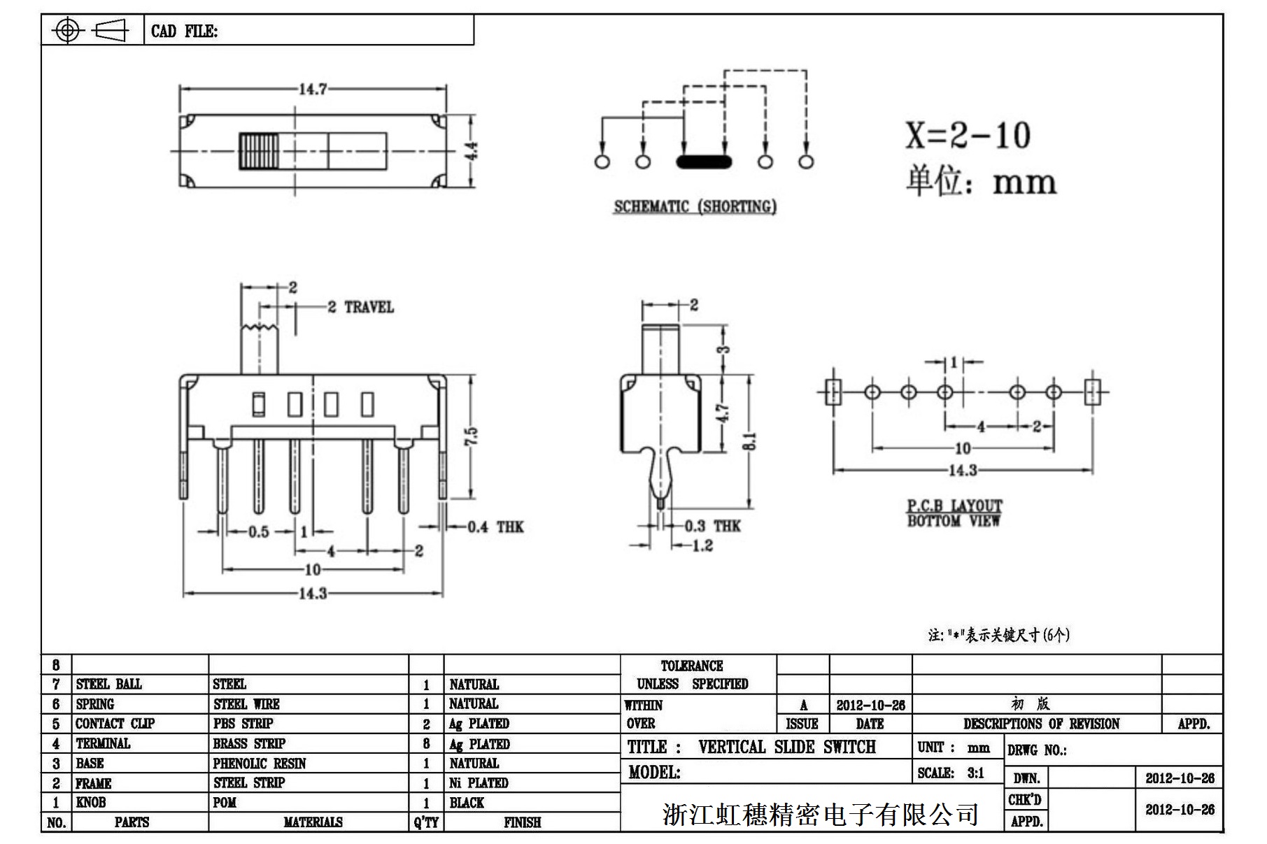 Verticaltoggle switch side dial/ Vertical slide switch technical indicators