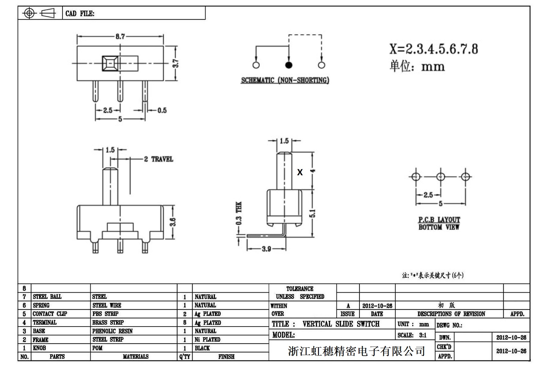Verticaltoggle switch side dial/ Vertical slide switch technical indicators