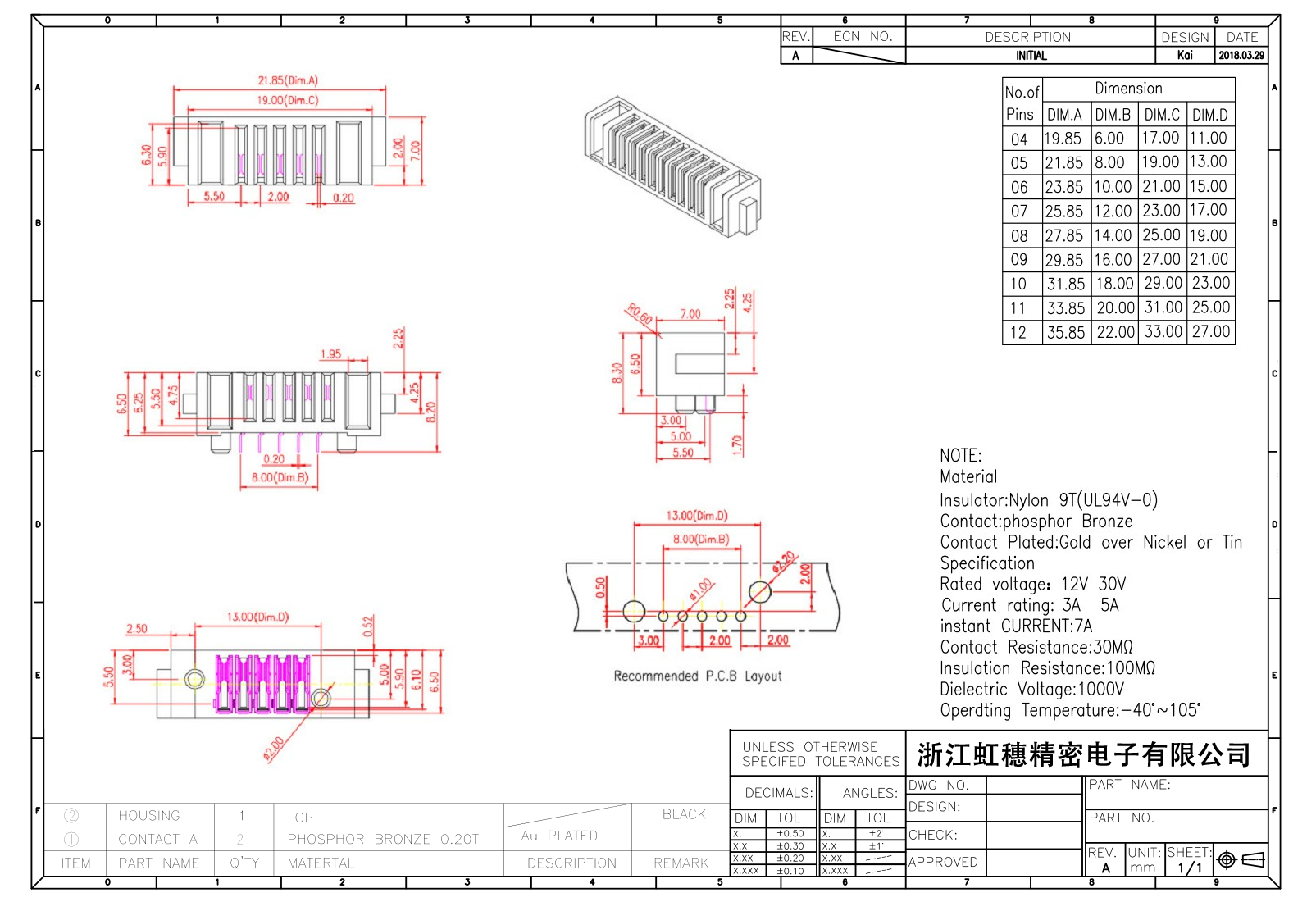 表面镀层:金在镍/锡之上,镀层厚度3U