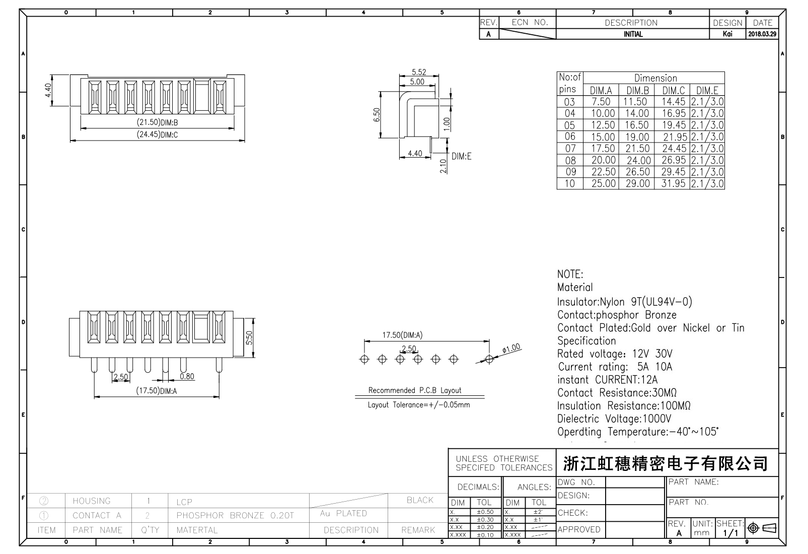 绝缘主体:Nylon 6T/9T(UL94V-0)