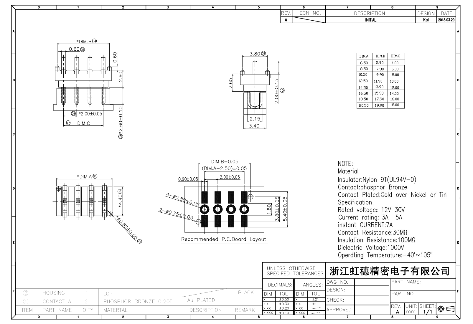 表面镀层:金在镍/锡之上,镀层厚度3U