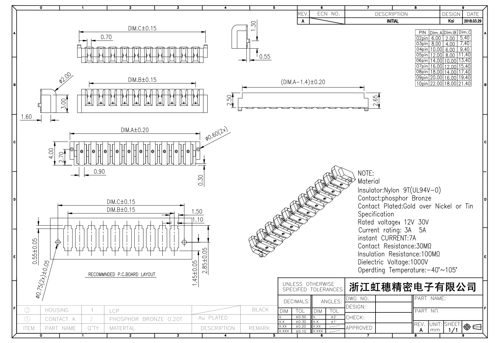 表面镀层:金在镍/锡之上,镀层厚度3U