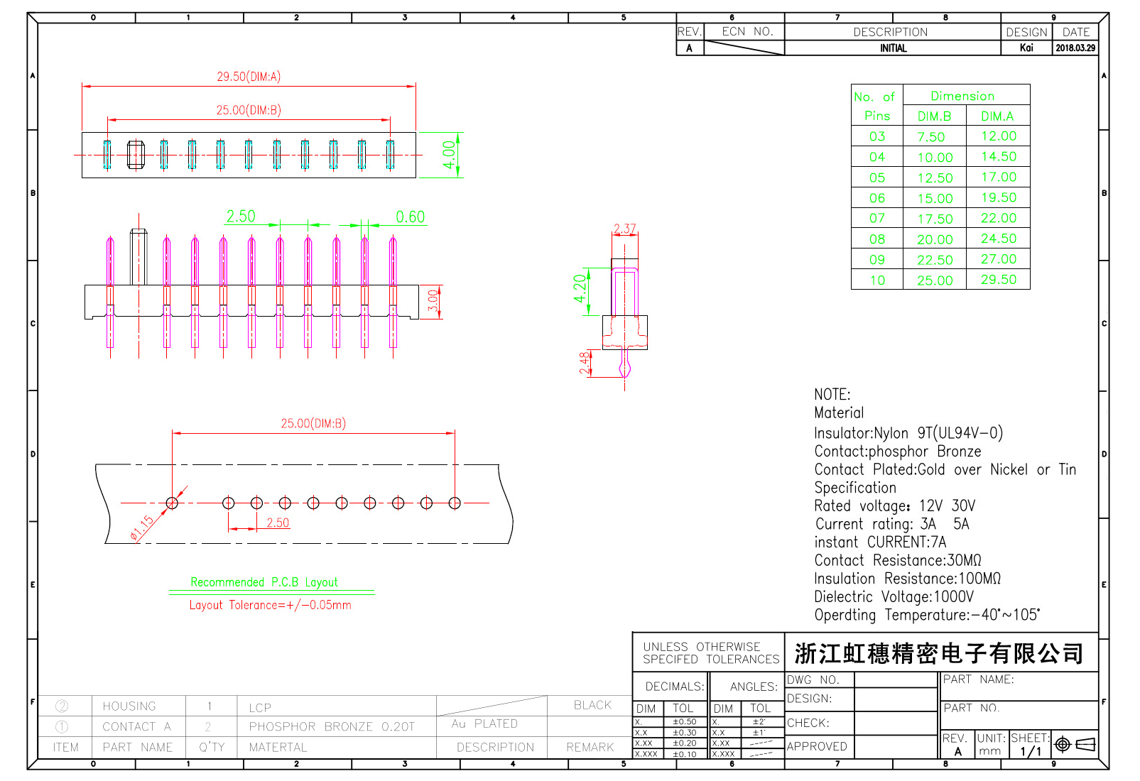 绝缘主体:Nylon 6T/9TUL94V-0