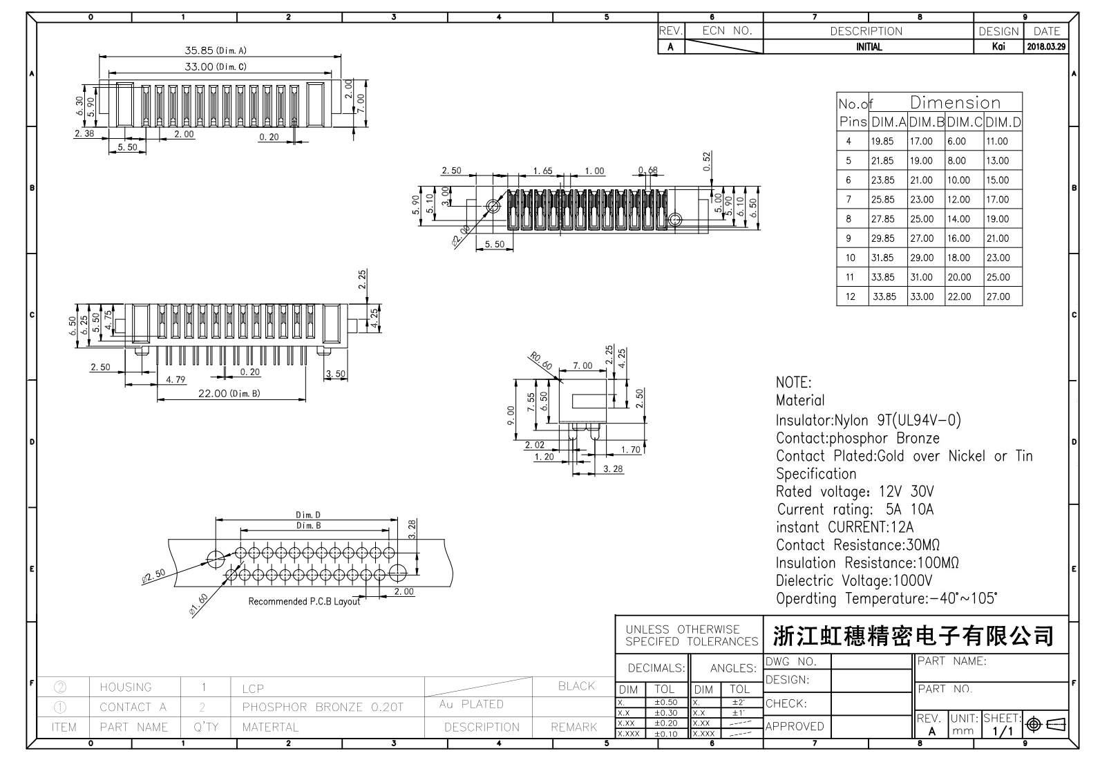 表面镀层:金在镍/锡之上,镀层厚度3U
