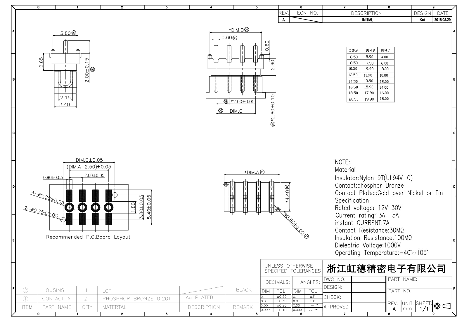 表面镀层:金在镍/锡之上,镀层厚度3U