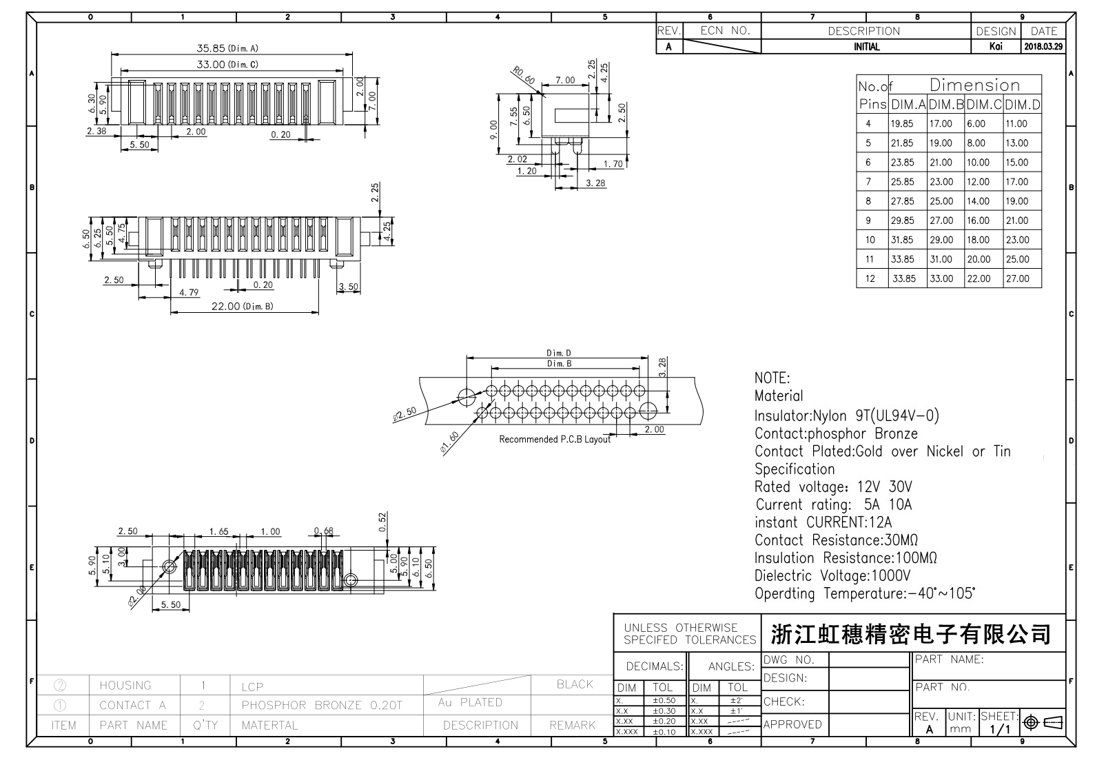 表面镀层:金在镍/锡之上,镀层厚度3U