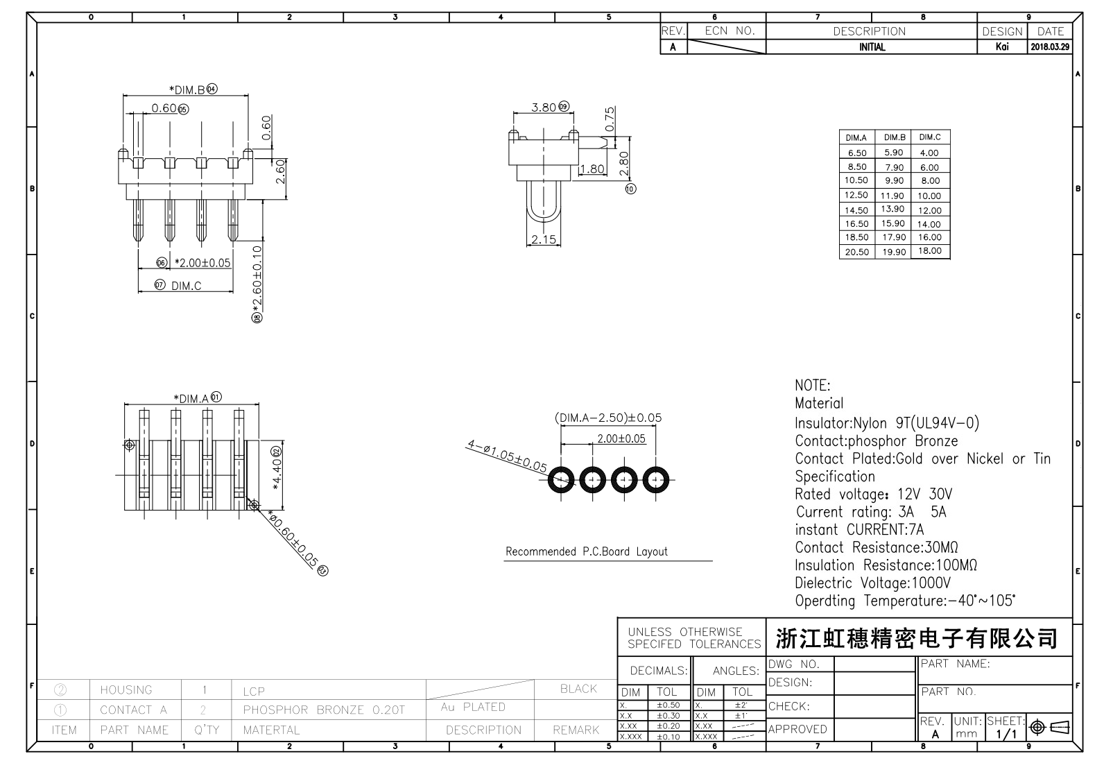 表面镀层:金在镍/锡之上,镀层厚度3U