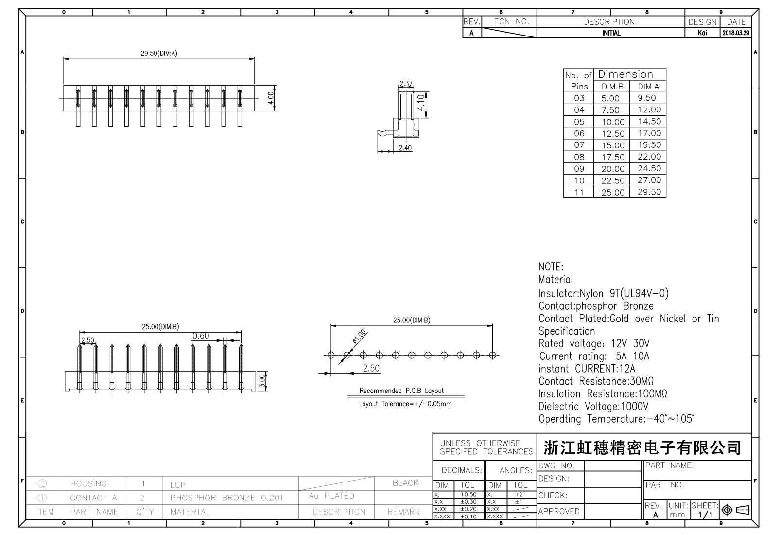表面镀层:金在镍/锡之上,镀层厚度3U