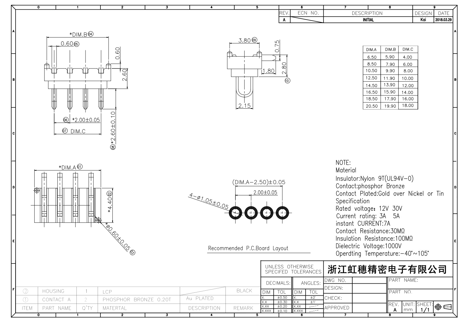 表面镀层:金在镍/锡之上,镀层厚度3U