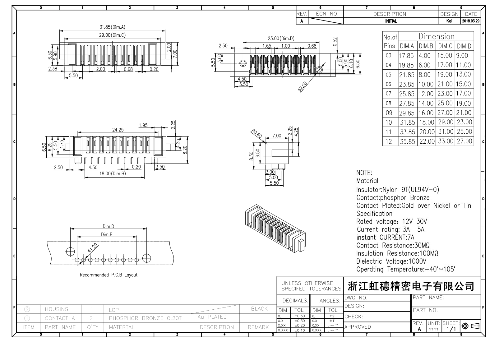 表面镀层:金在镍/锡之上,镀层厚度3U