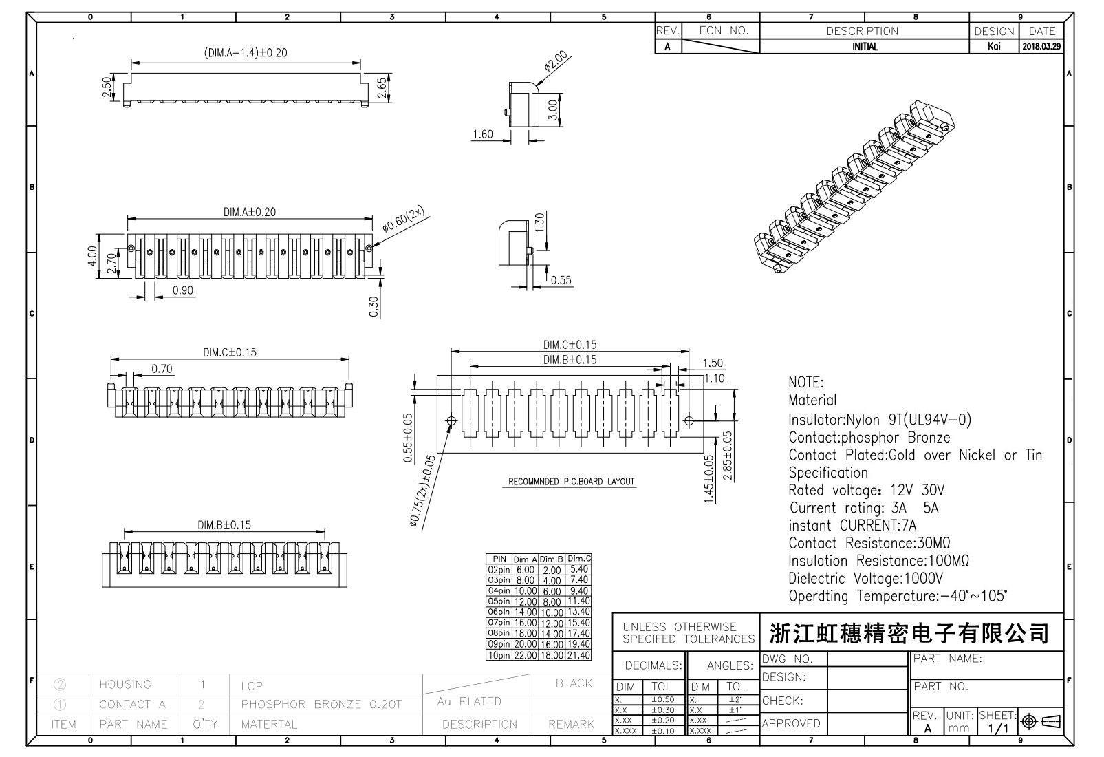 表面镀层:金在镍/锡之上,镀层厚度3U