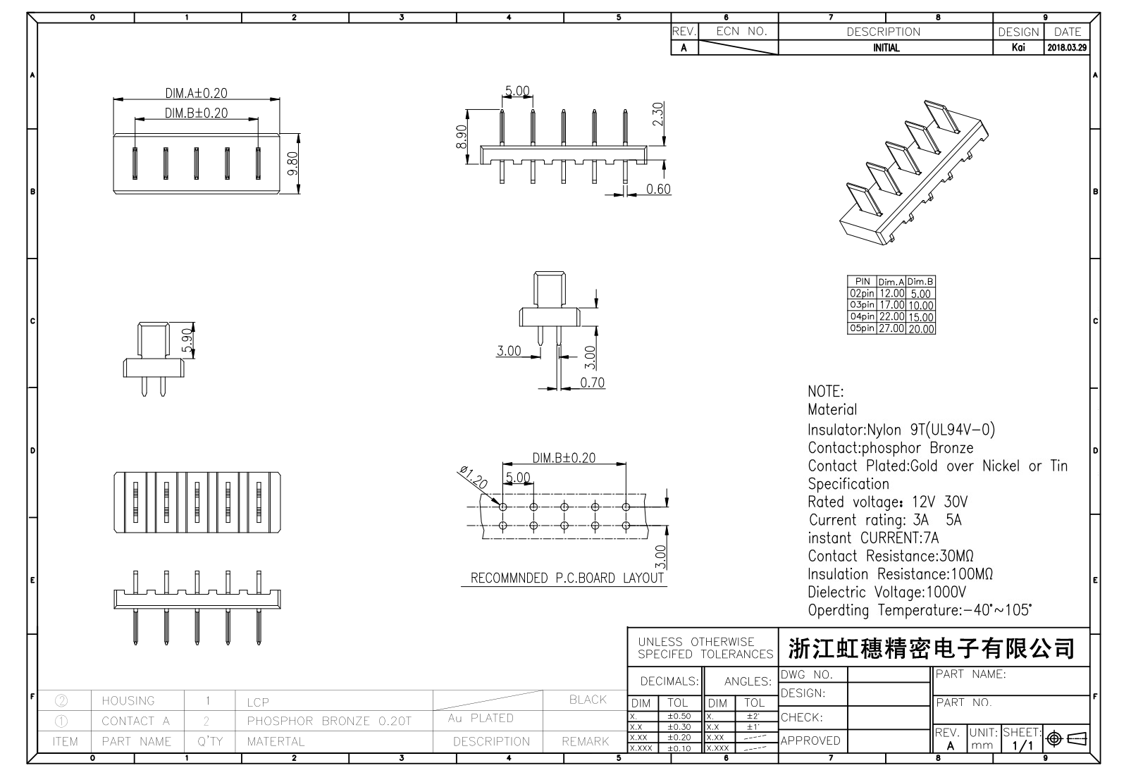 表面镀层:金在镍/锡之上,镀层厚度3U
