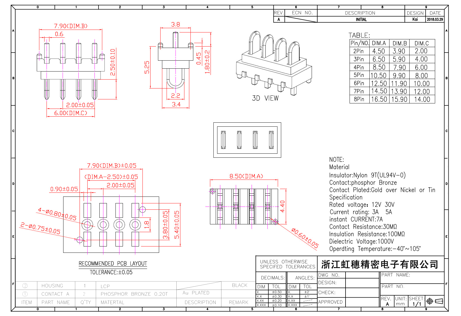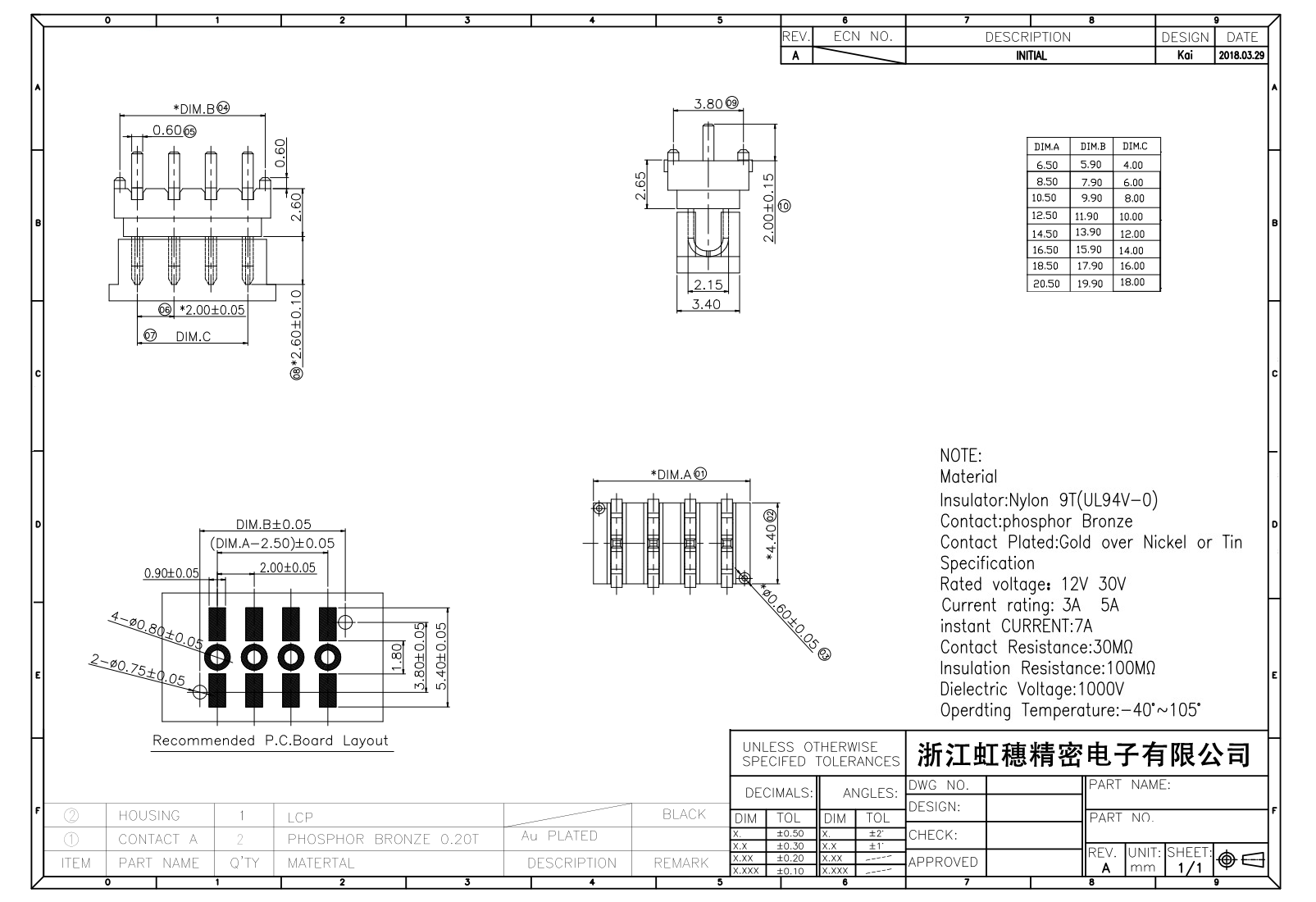 表面镀层:金在镍/锡之上,镀层厚度3U