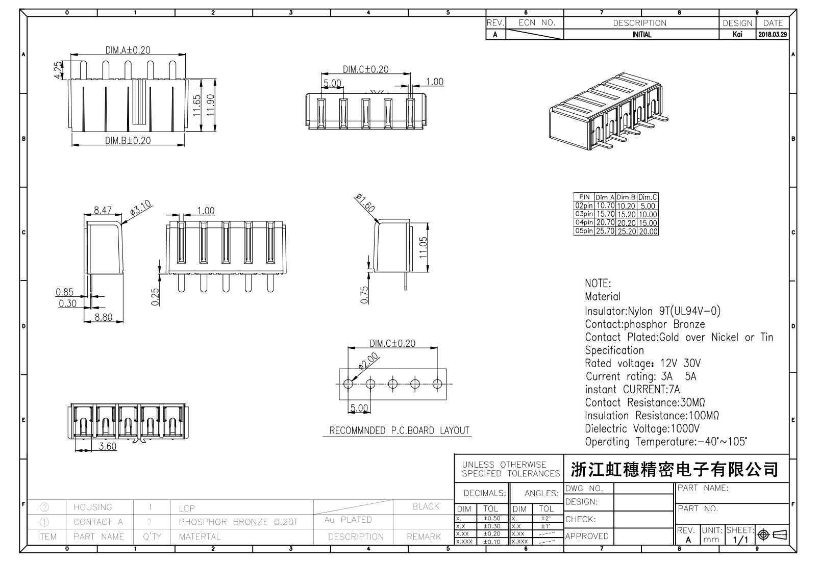 表面镀层:金在镍/锡之上,镀层厚度3U