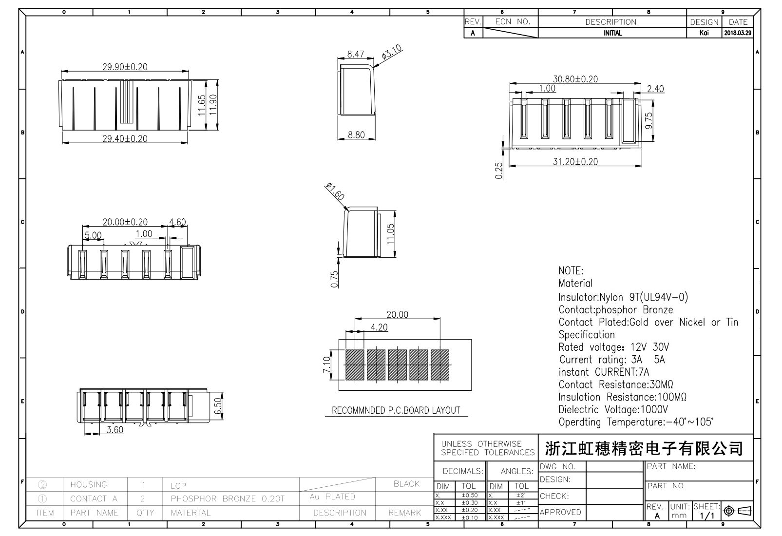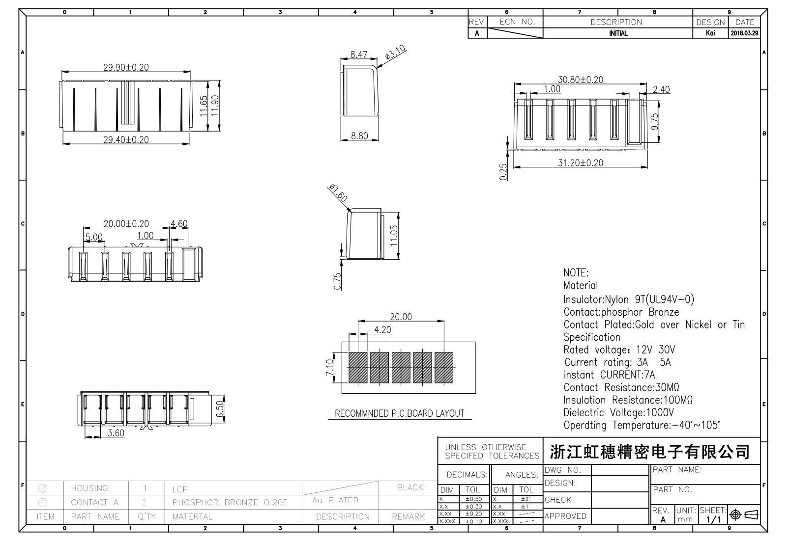 绝缘主体:Nylon 6T/9TUL94V-0