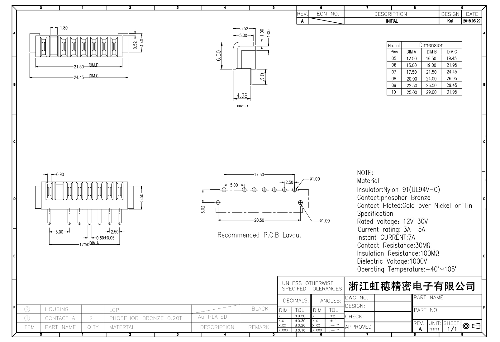 绝缘主体:Nylon 6T/9T(UL94V-0)