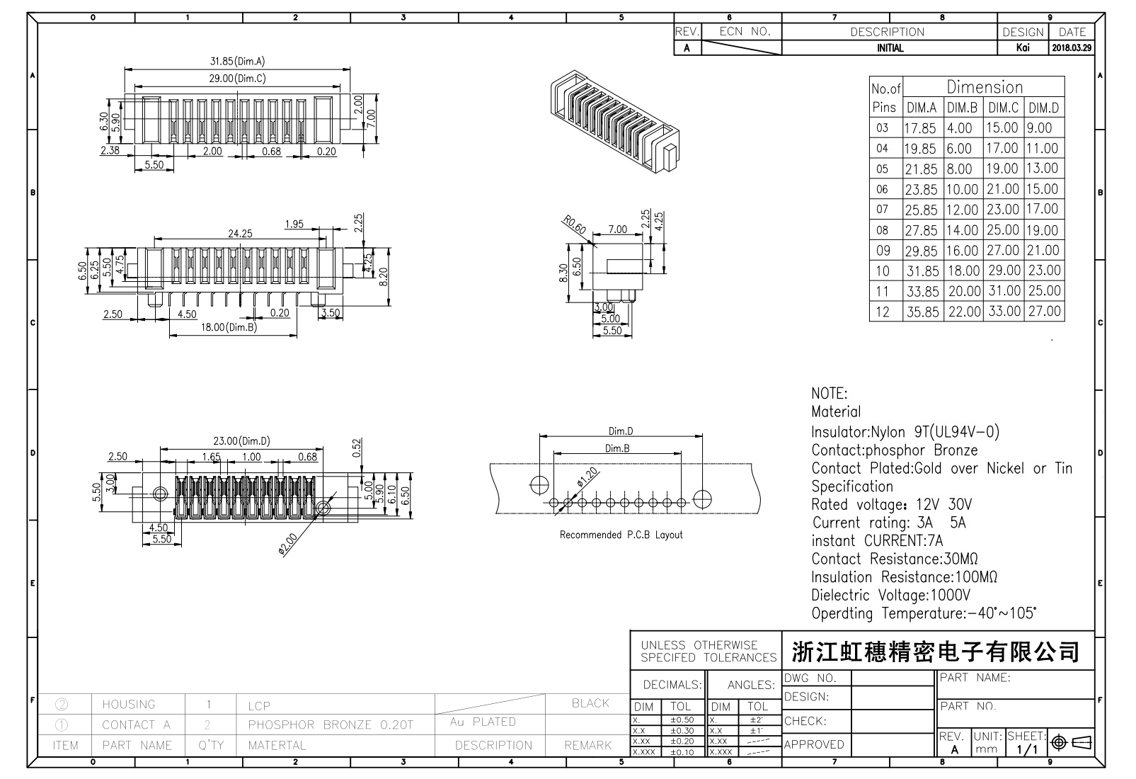 绝缘主体:Nylon 6T/9TUL94V-0
