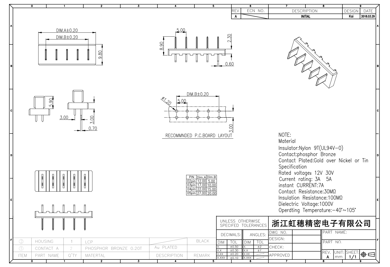 表面镀层:金在镍/锡之上,镀层厚度3U