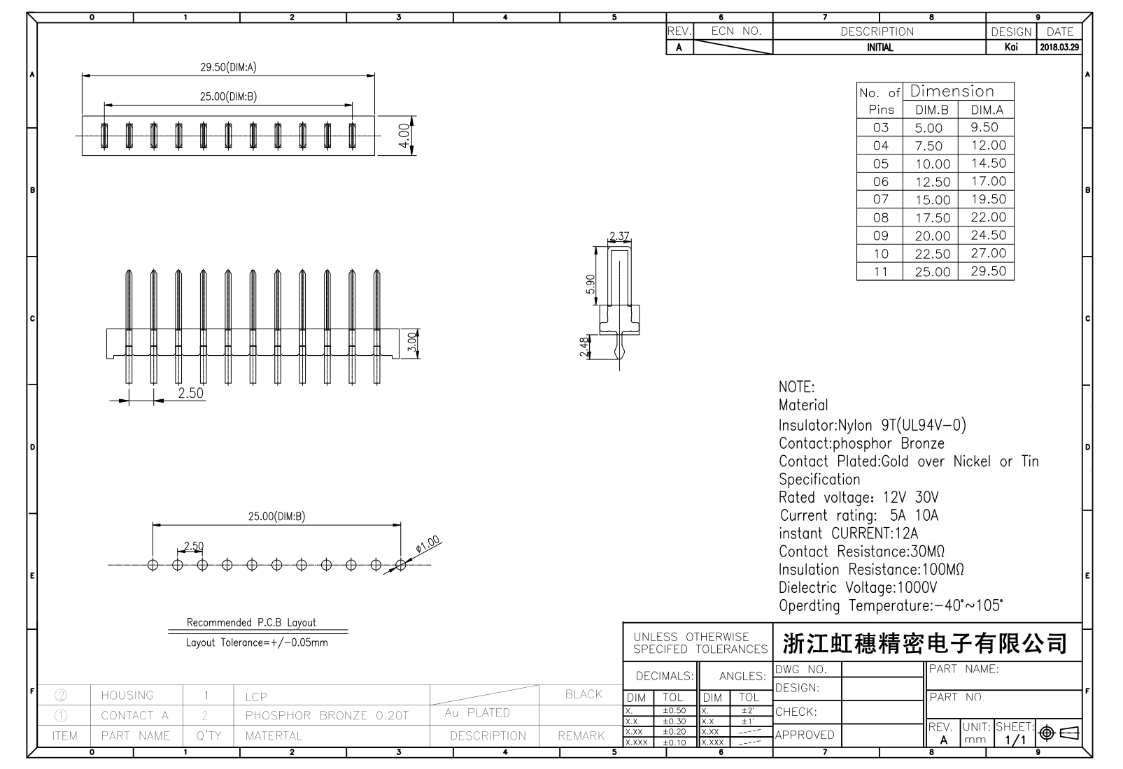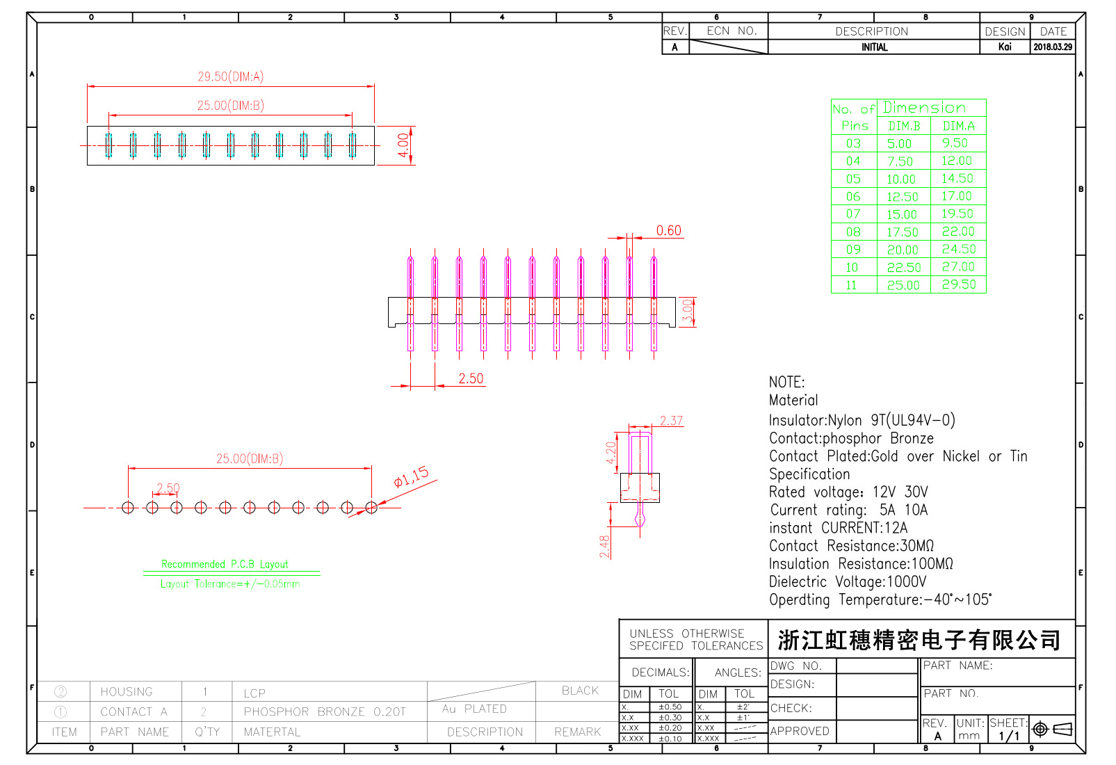 表面镀层:金在镍/锡之上,镀层厚度3U
