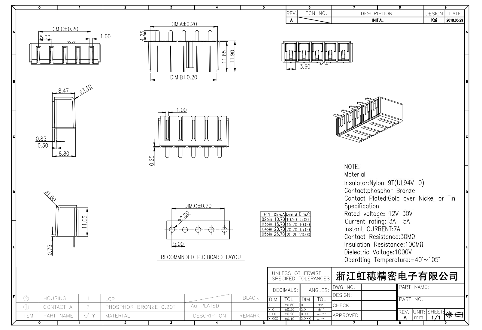 额定电流:3A 5A 7A/PIN