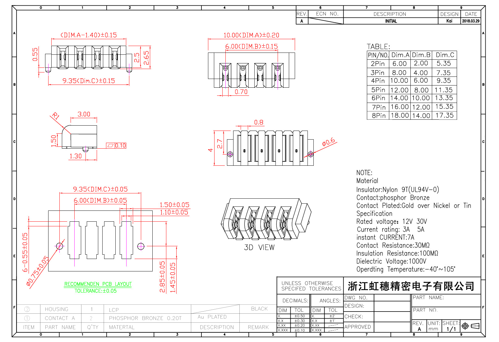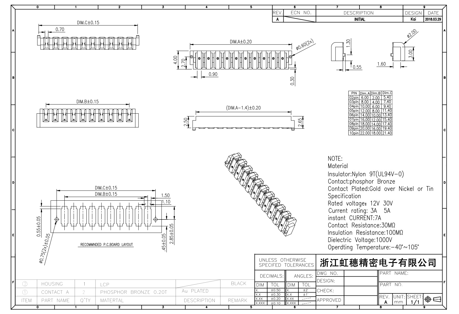 表面镀层:金在镍/锡之上,镀层厚度3U