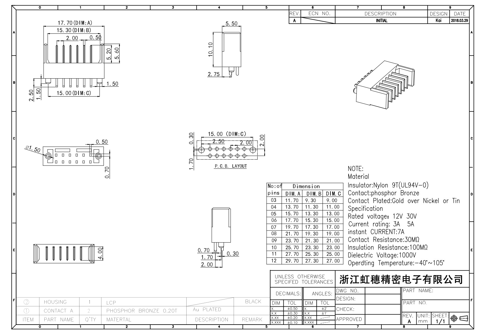 绝缘主体:Nylon 6T/9TUL94V-0