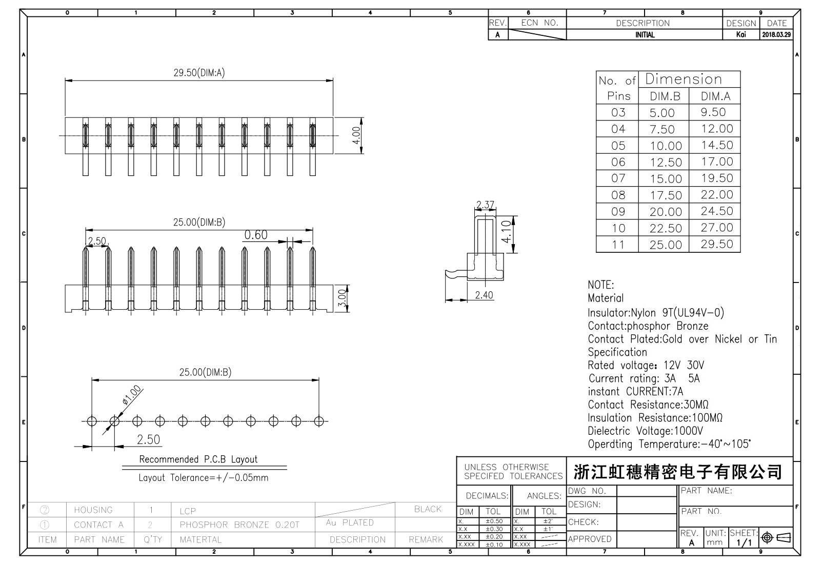 绝缘主体:Nylon 6T/9T(UL94V-0)
