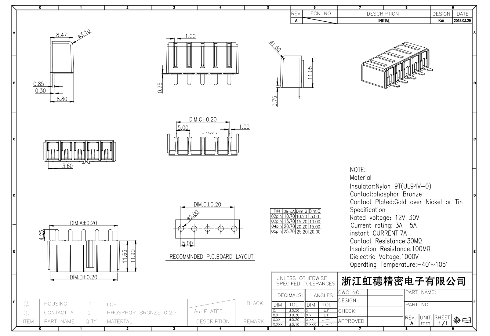 表面镀层:金在镍/锡之上,镀层厚度3U