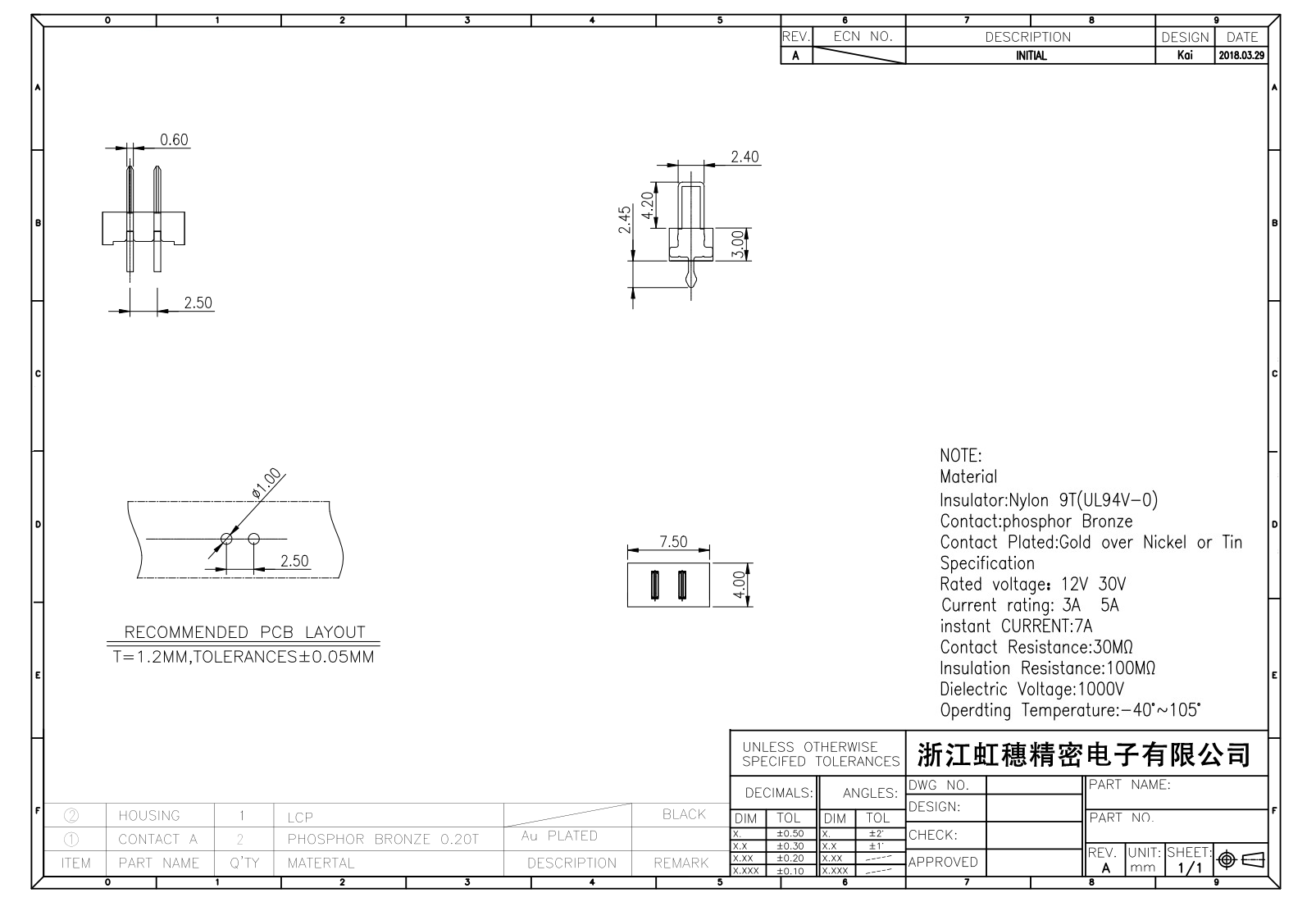 表面镀层:金在镍/锡之上,镀层厚度3U