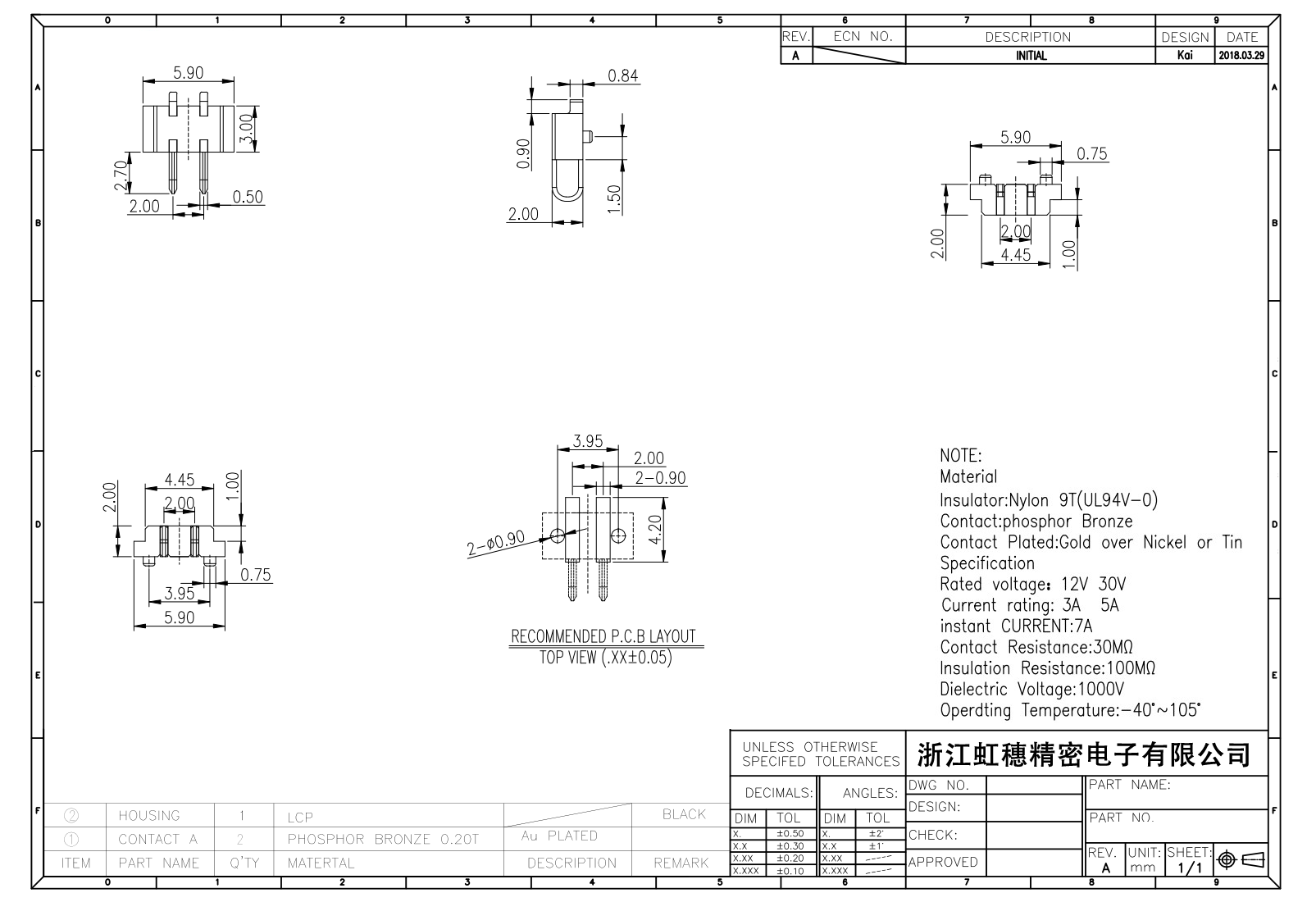 表面镀层:金在镍/锡之上,镀层厚度3U