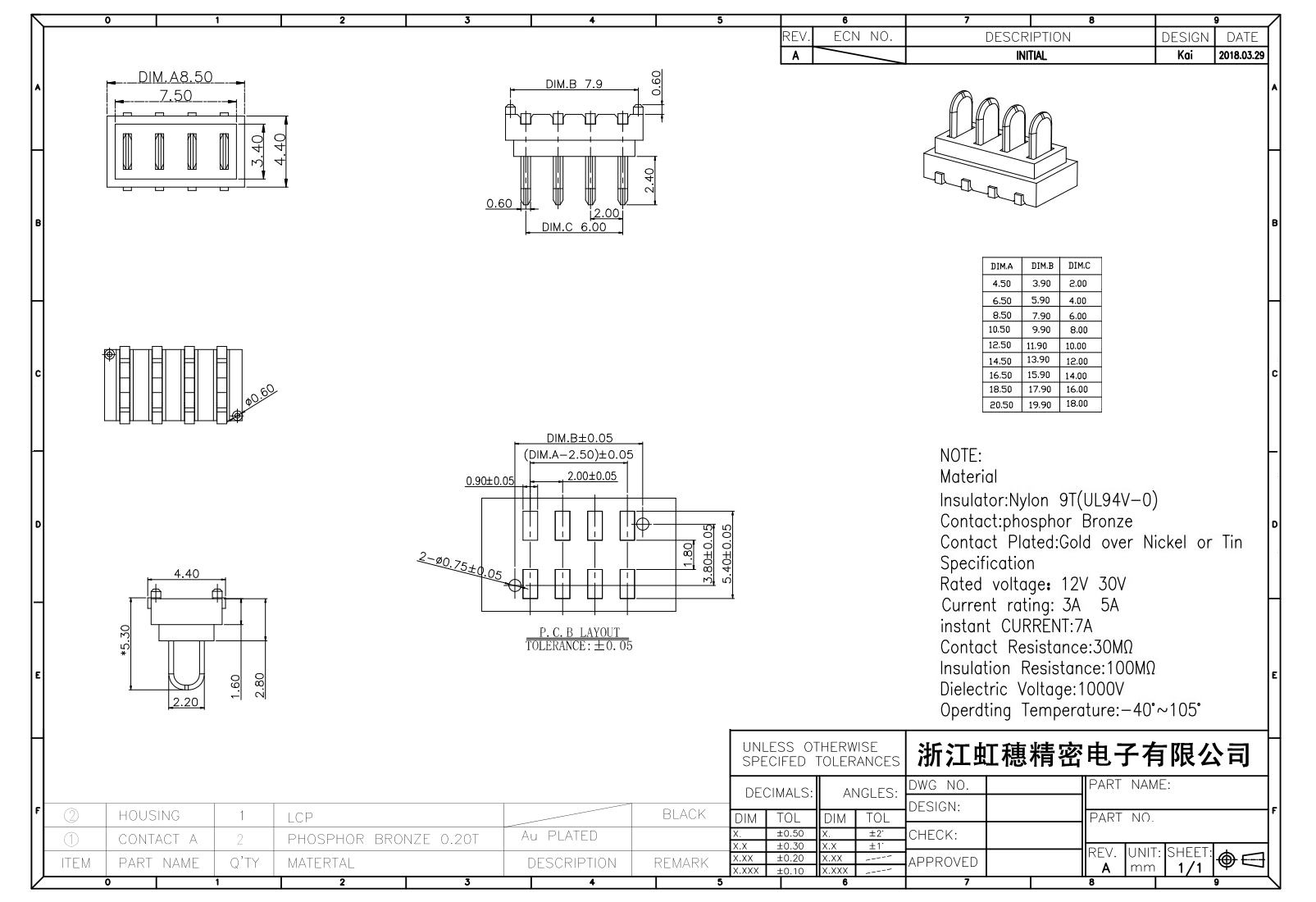 表面镀层:金在镍/锡之上,镀层厚度3U