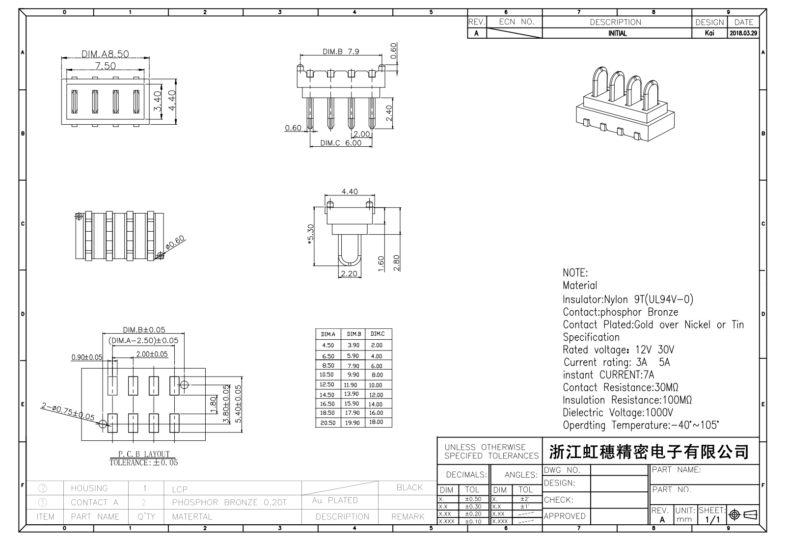 表面镀层:金在镍/锡之上,镀层厚度3U