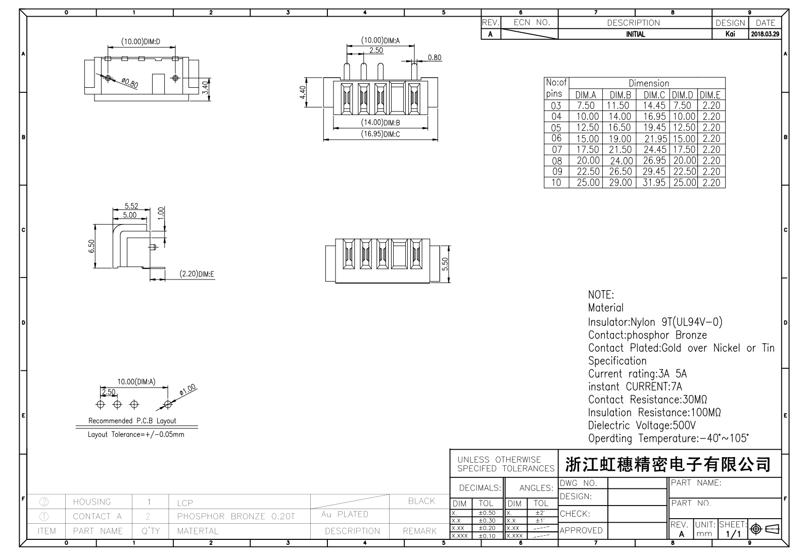 绝缘主体:Nylon 6T/9TUL94V-0