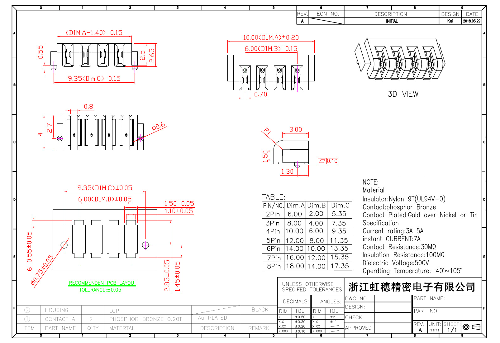 绝缘主体:Nylon 6T/9T(UL94V-0)