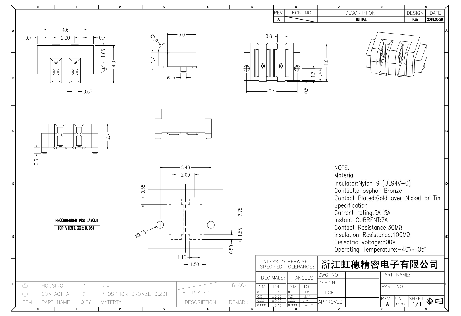 表面镀层:金在镍/锡之上,镀层厚度3U″