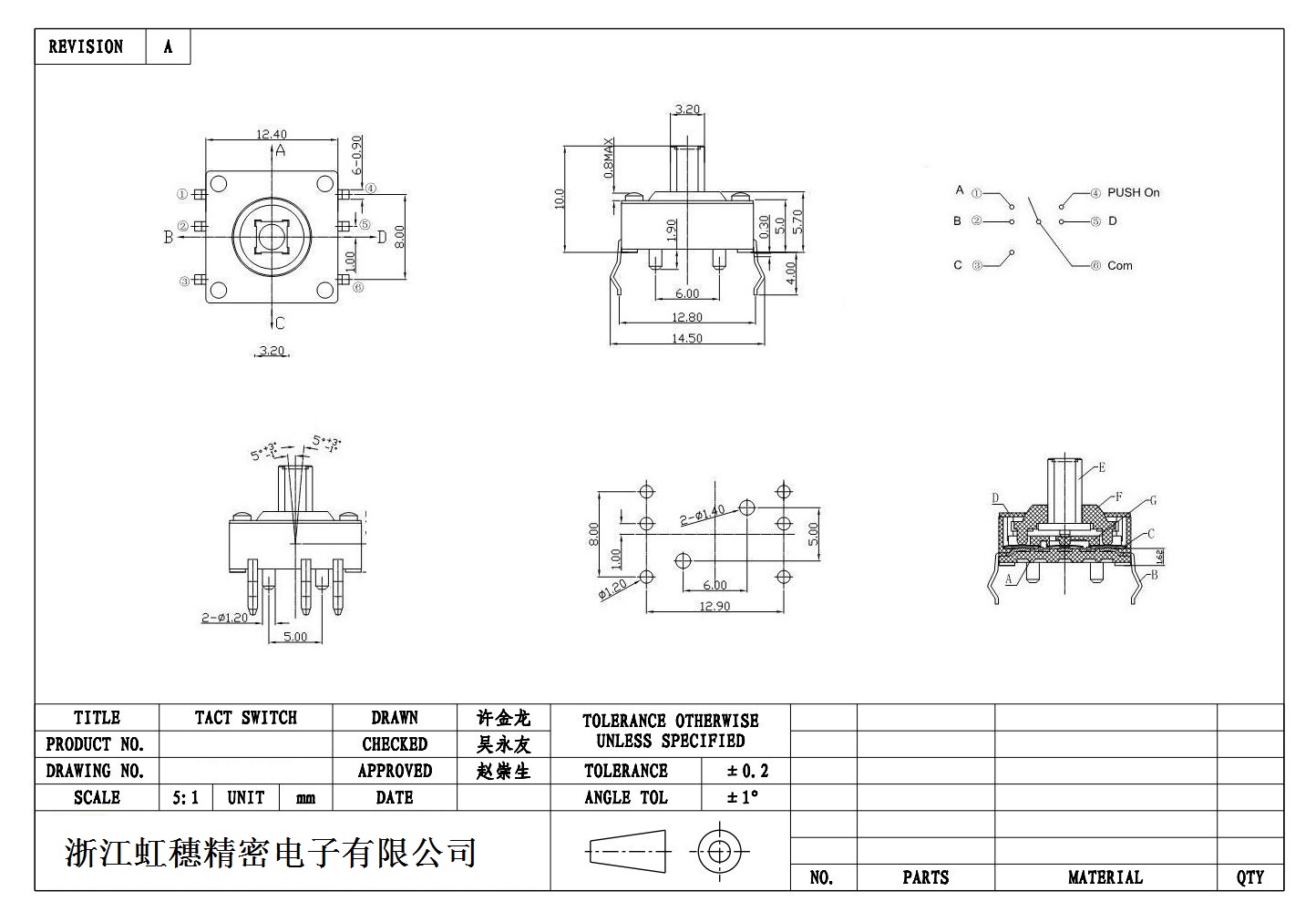 MultiFunctional Five-way Switch Light Tact Five-way Switch technical parameters: