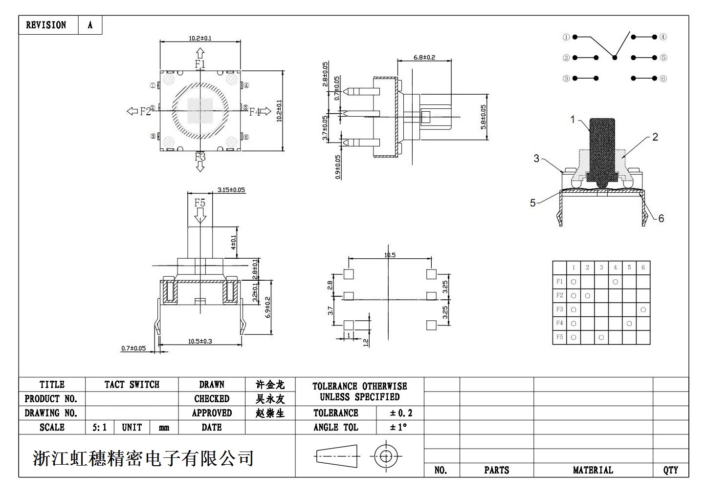 MultiFunctional Five-way Switch Light Tact Five-way Switch technical parameters: