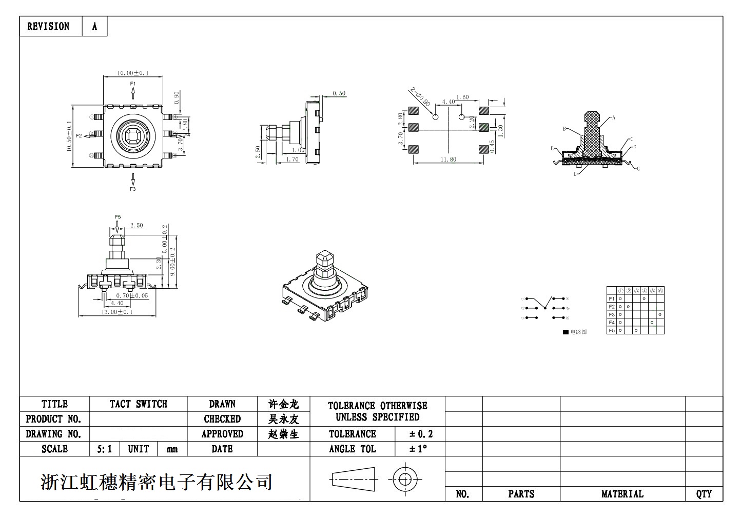 MultiFunctional Five-way Switch Light Tact Five-way Switch technical parameters: