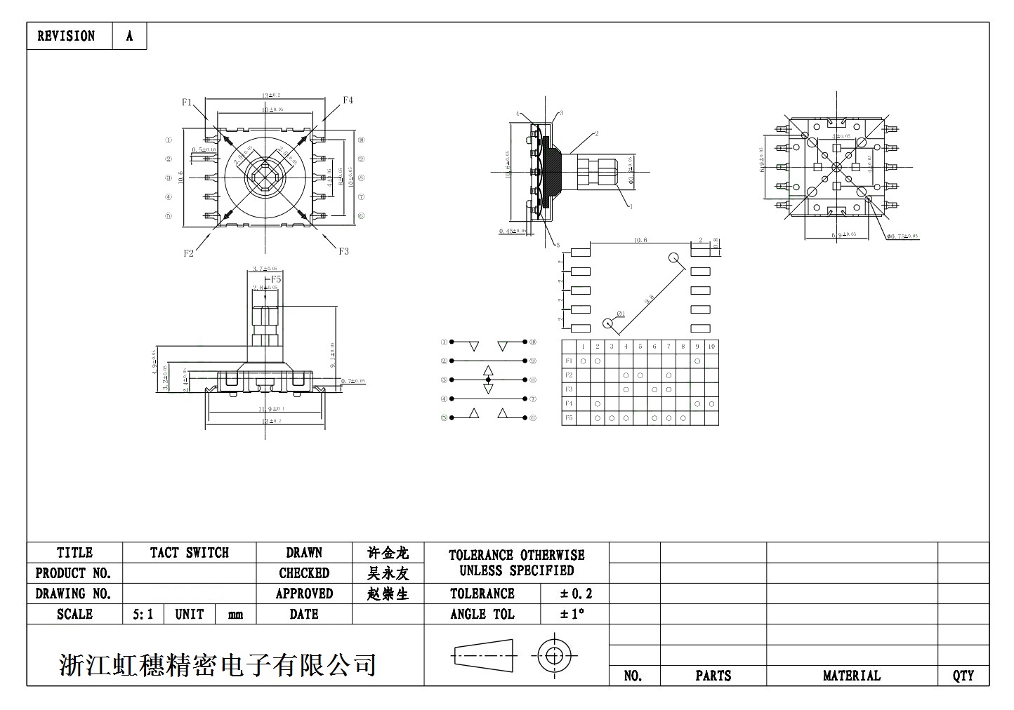 MultiFunctional Five-way Switch Light Tact Five-way Switch technical parameters: