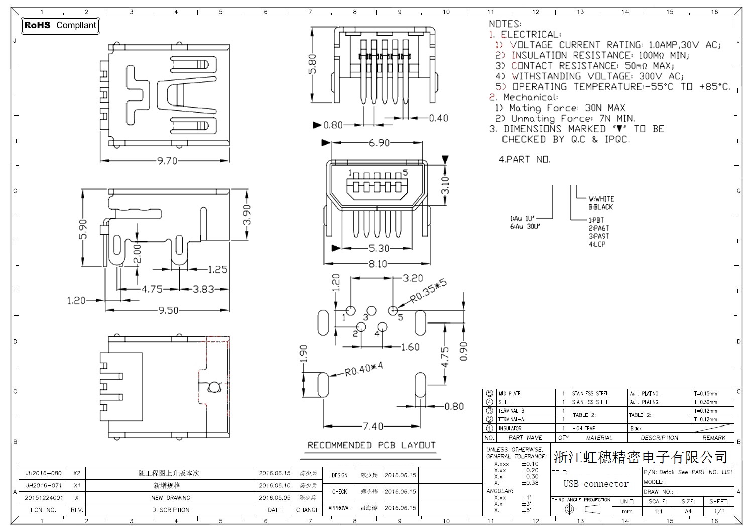 MINI USB插座技术参数: