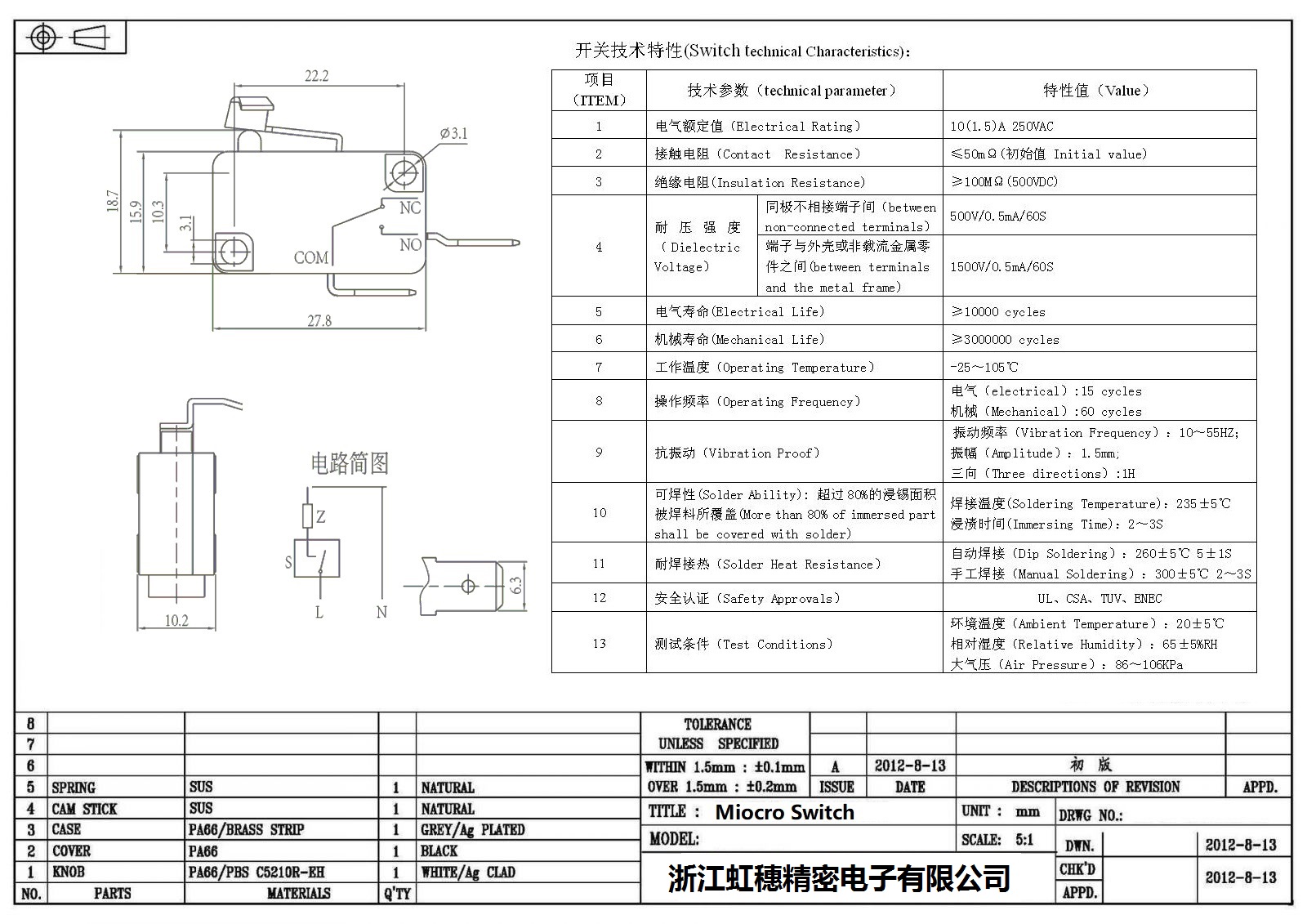 微动开关电气特性