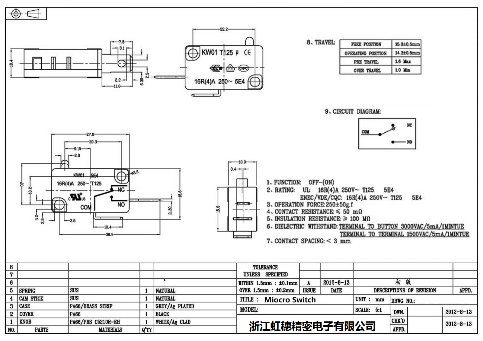 6、绝缘耐压:TBRMINAL TDO BUTTON 3000VAC/5mA/1MINTUB