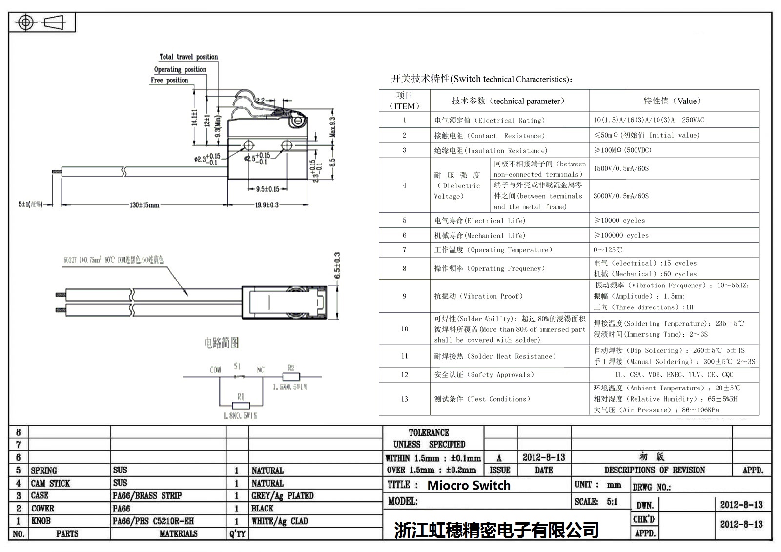 微动开关电气特性