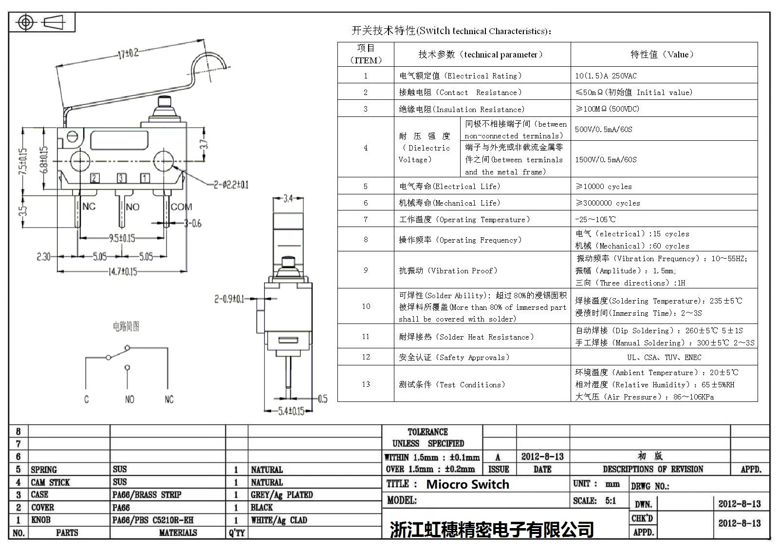 微动开关电气特性