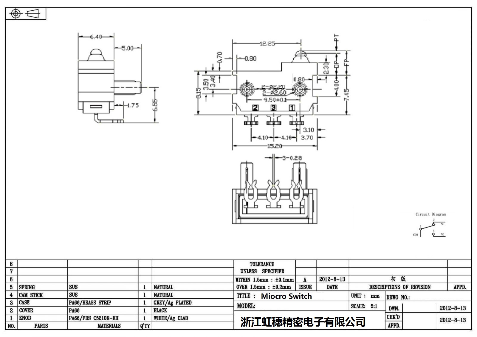 .请根据额定值电流、操作负载、驱动杆的种类、使用温度等要求选择合适型号的开关;