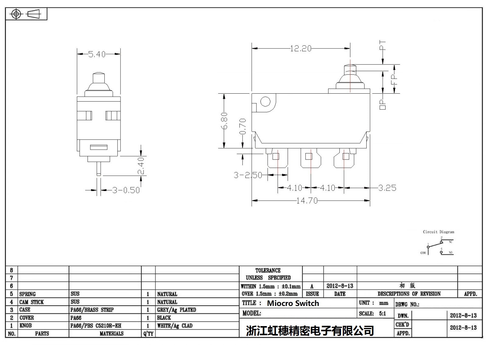 .请根据额定值电流、操作负载、驱动杆的种类、使用温度等要求选择合适型号的开关;