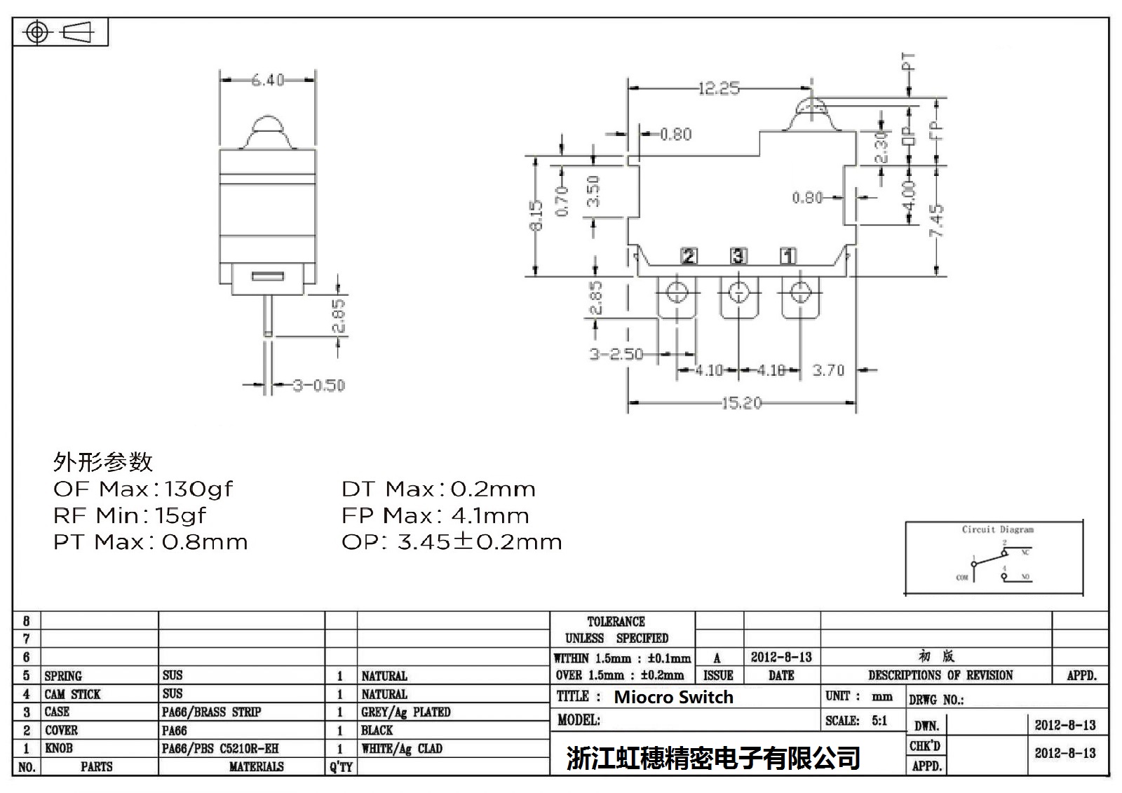 .请根据额定值电流、操作负载、驱动杆的种类、使用温度等要求选择合适型号的开关;