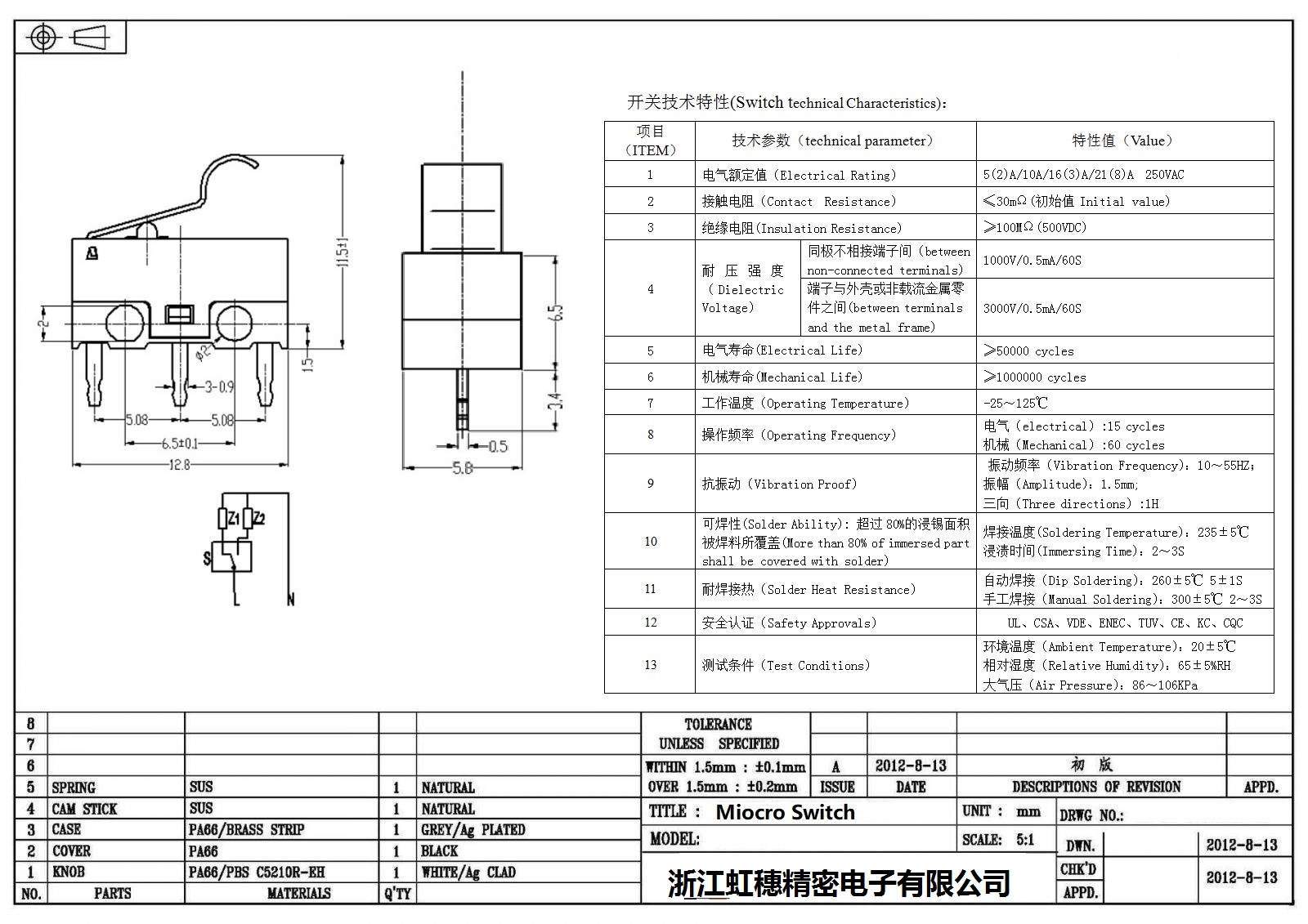 微动开关电气特性